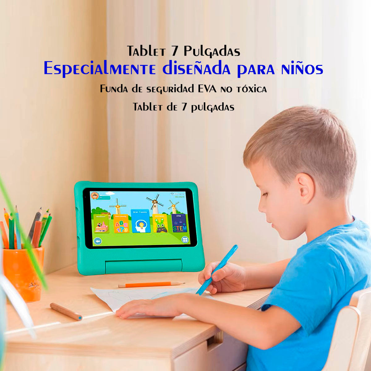 Características: Tablet Kids de 7 Pulgada con 3 Gb en Ram y 32 Gb en Rom. Sistema Android con conexión WiFi. Funda de Goma EVA no Toxica.
